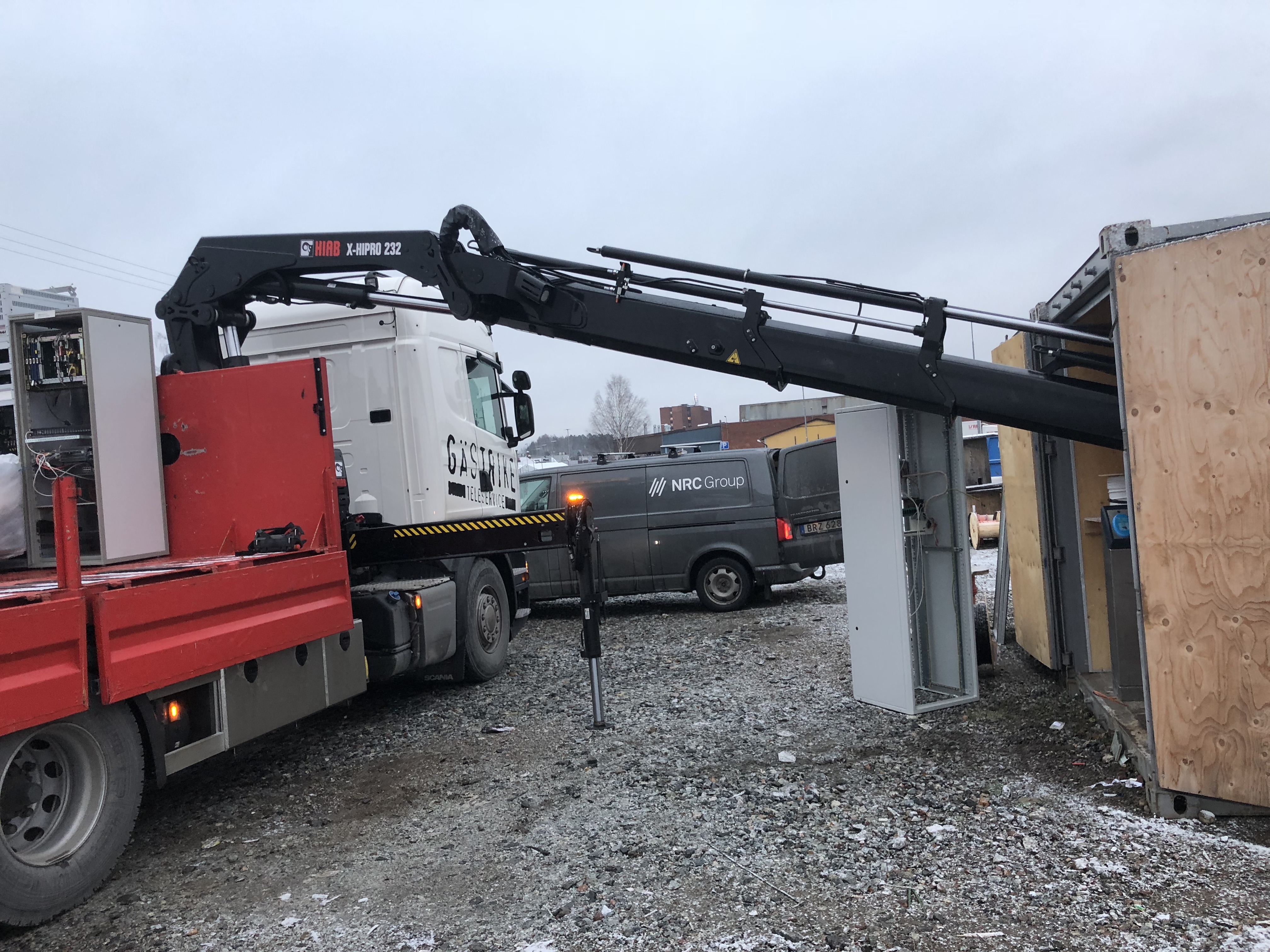 Lastväxlare med kran, lyfter 1 ton på 15 meter